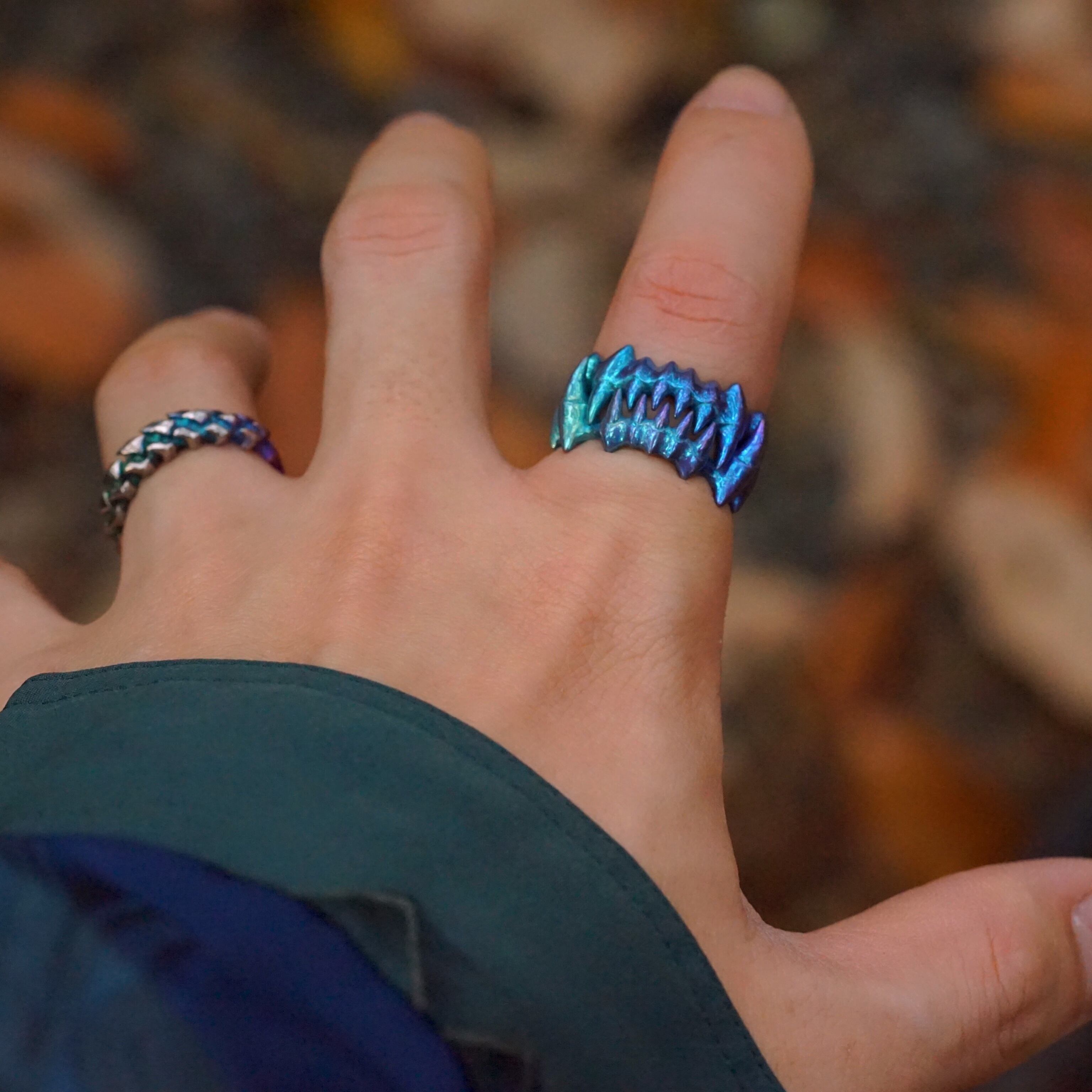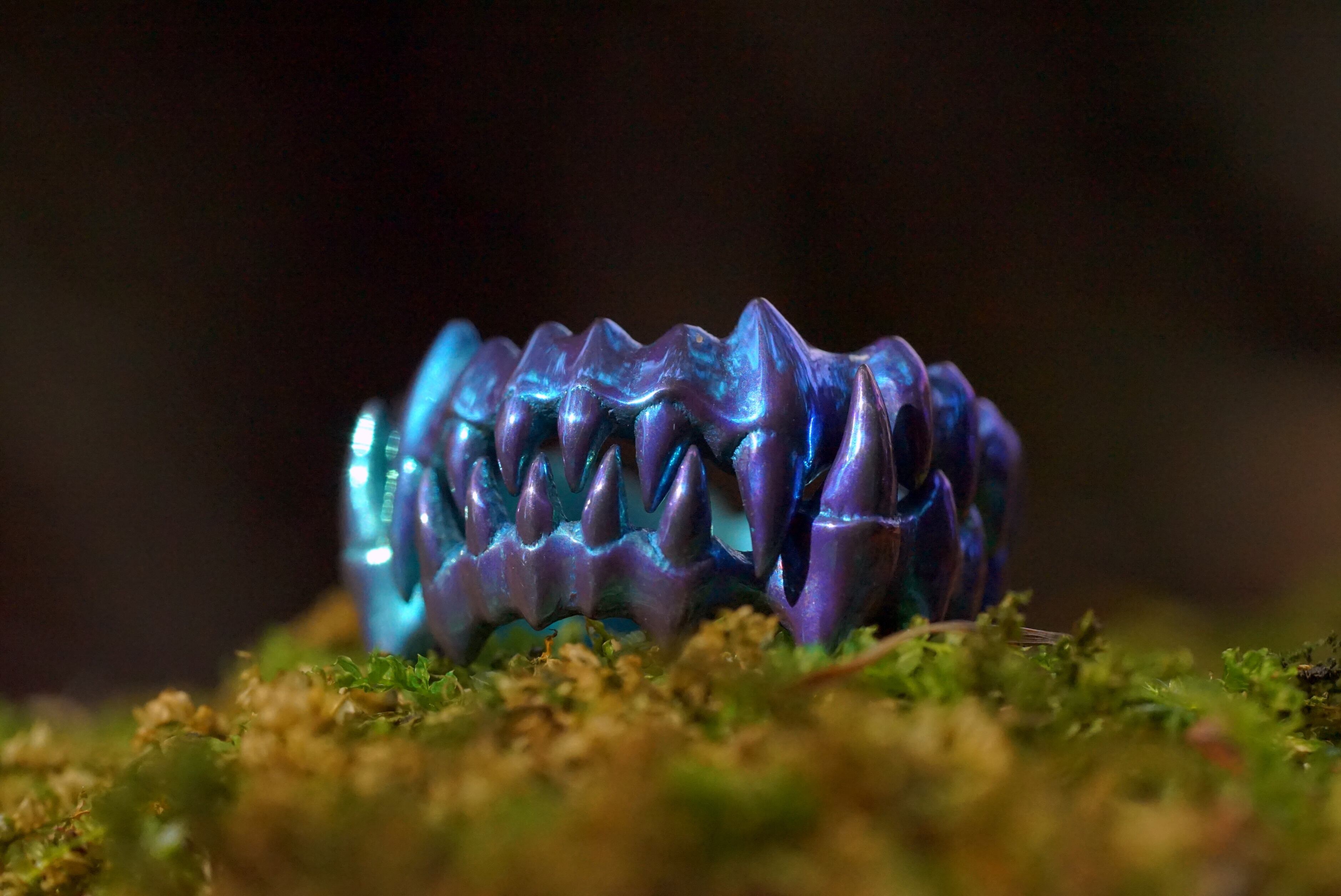 上顎・下顎を噛み合わせると2つで1つのリングになるペアギミックです